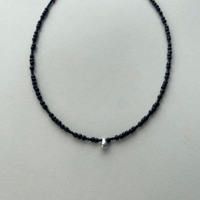【unu】chobo drop necklace (black) こちらのデザインはunisex itemです。 備考欄にて【長め希望】と書いて頂ければ ビーズ部分の長さを45cm、 金具部分含め52cmでお作りさせていただきます。その場合もお値段の変更はございません。 chobo drop necklace seriesと pair necklaceとしてもお使い頂けます。 使用していると金属部分が黒ずんでくることがありますが、柔らかい布などで磨いて頂くと艶が戻ります。 天然石やパールを使用したハンドメイド商品になりますので個体差がございます がご了承くださいませ。 お風呂や、海、プールでのご着用はお控えください。 丁寧にお作りしておりますが、ハンドメイド商品のため強い力などを加えると壊れてしまう恐れがあります。ご注意下さいませ。 color : シルバー material : チェコビーズ(ガラス)、真鍮、丹銅 長さ 金具部含め約43cm ビーズ部分約35.5cm アジャスターで長さ調整可能 トップ部分 縦約0.6cm横約0.3cm 発送目安 1週間程度 送料 350円(ポスト投函)
