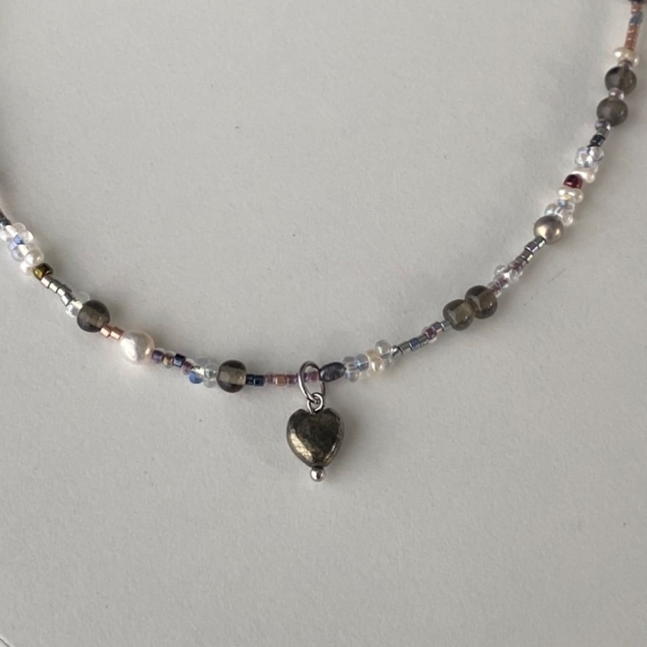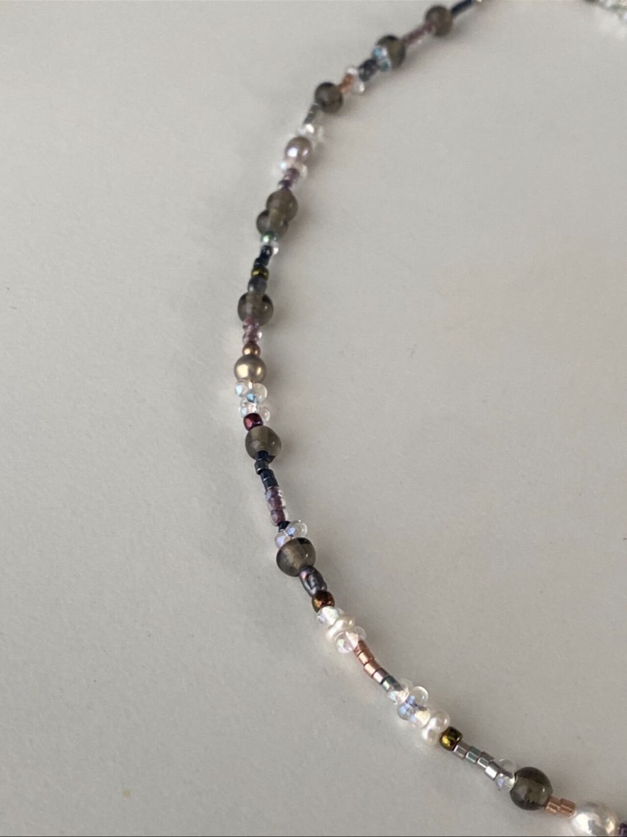 material : チェコビーズ(ガラス)、淡水パール、ガラスメッキビーズ、天然石、樹脂、真鍮