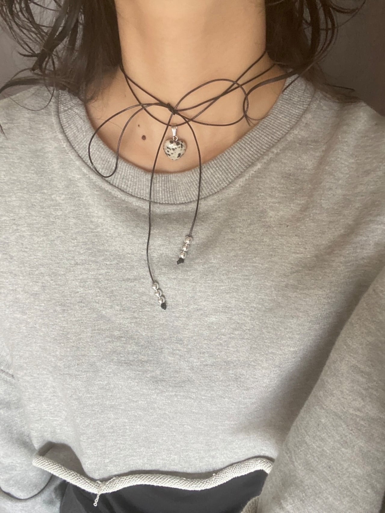 【unu】 stone ribbon choker -heart- (dalmatian jasper)