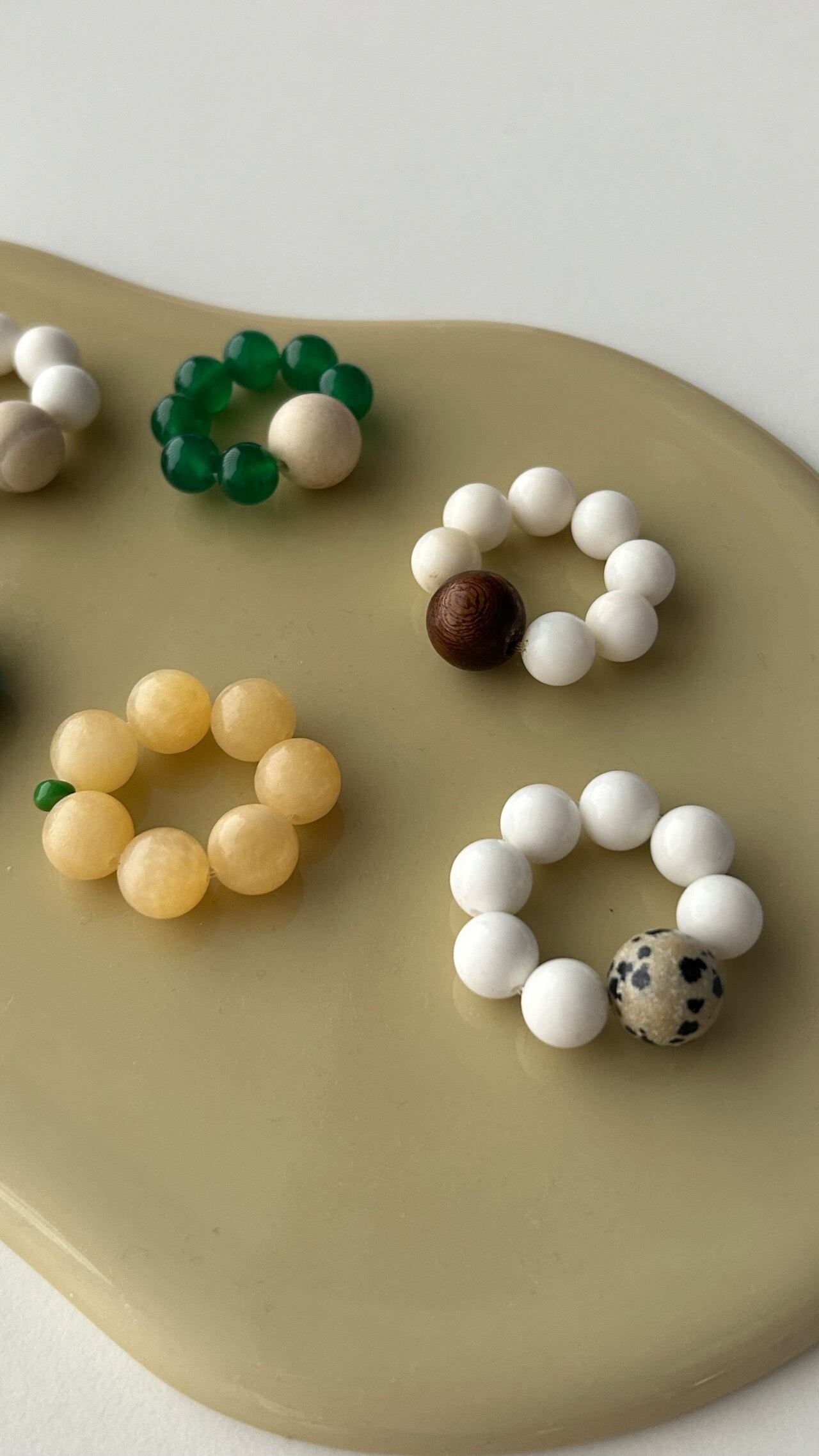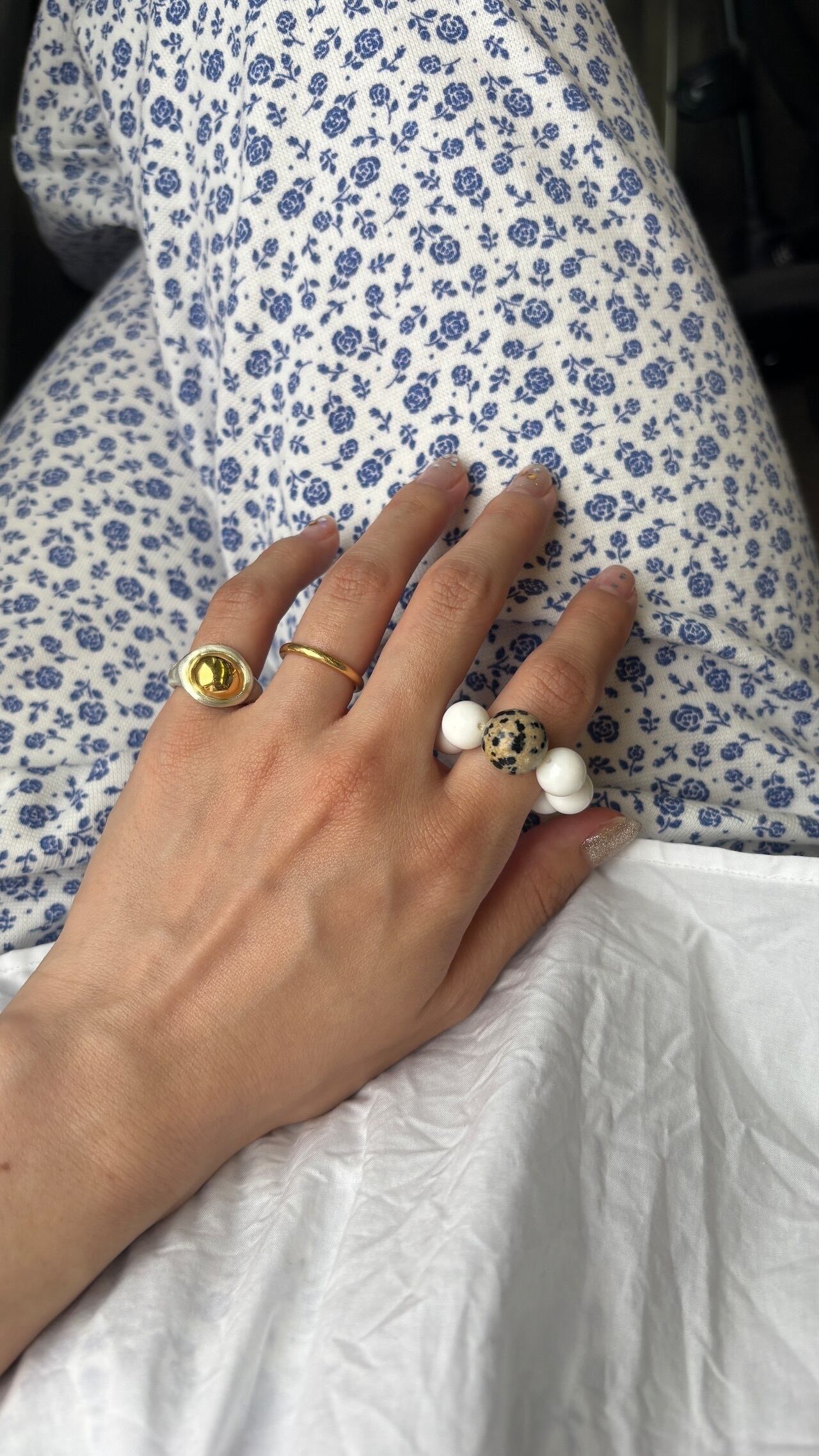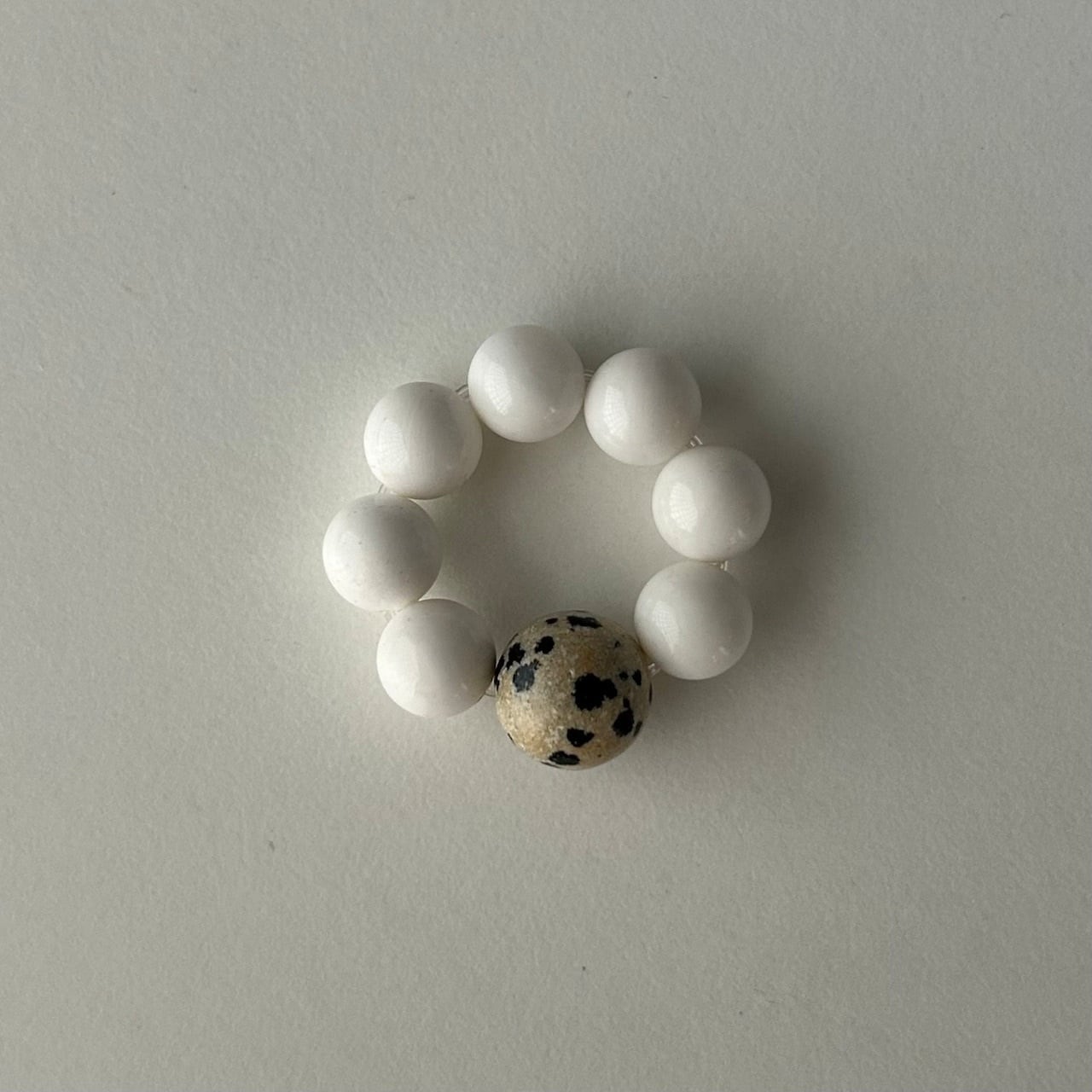 white shellとDalmatian jasperを組み合わせた、シンプルなホワイトのワントーンリング。