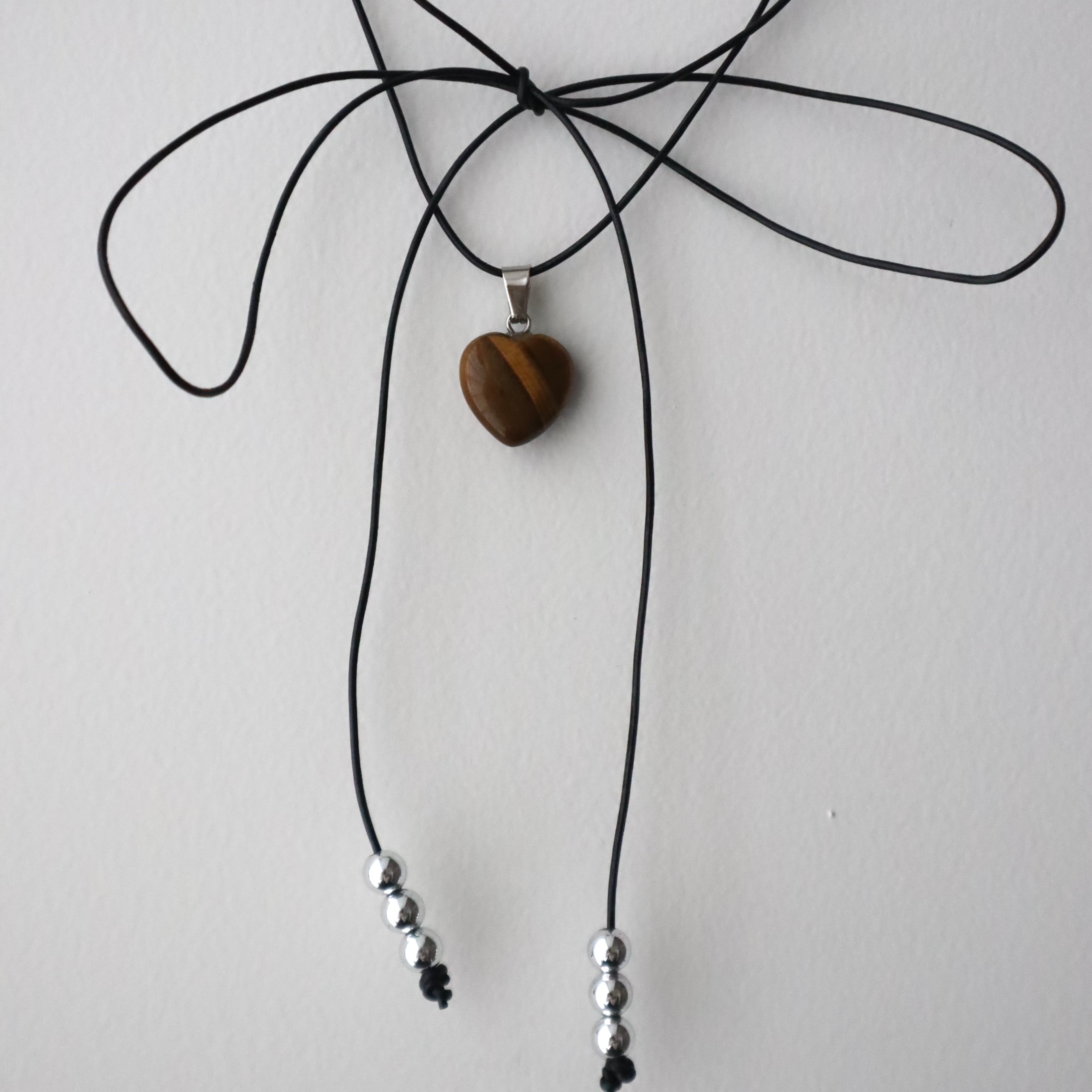 【unu】 stone ribbon choker -heart- (tiger eye)