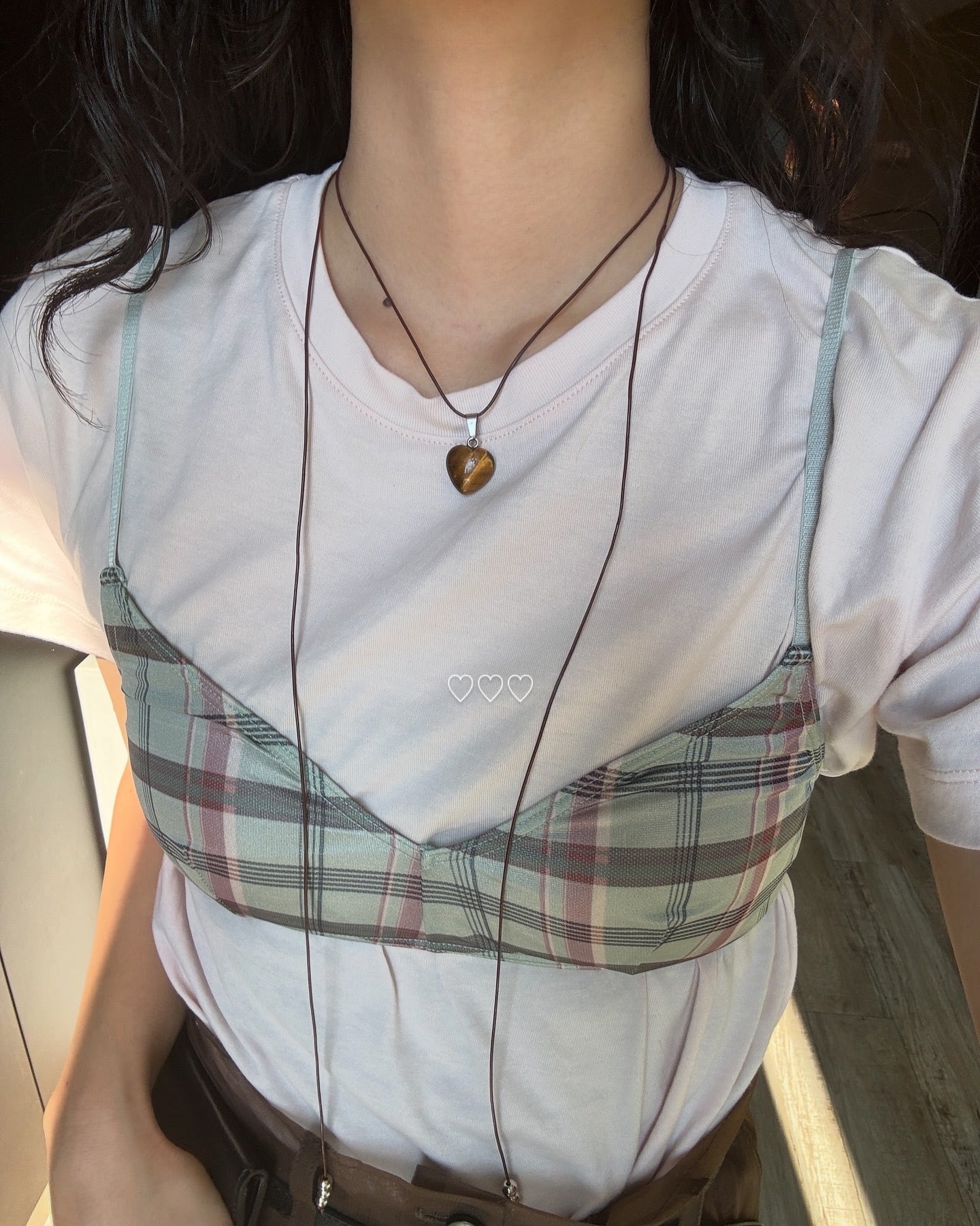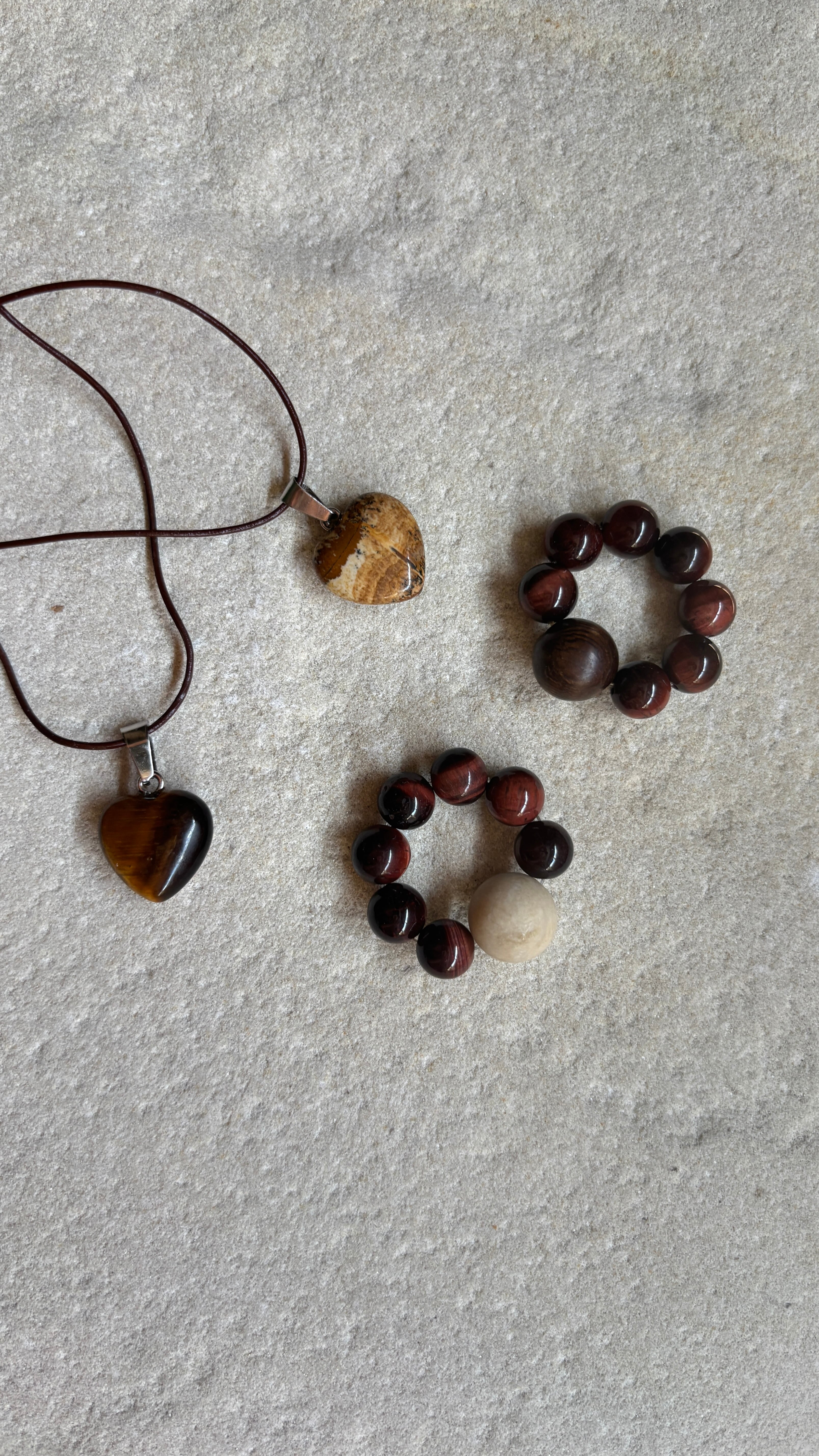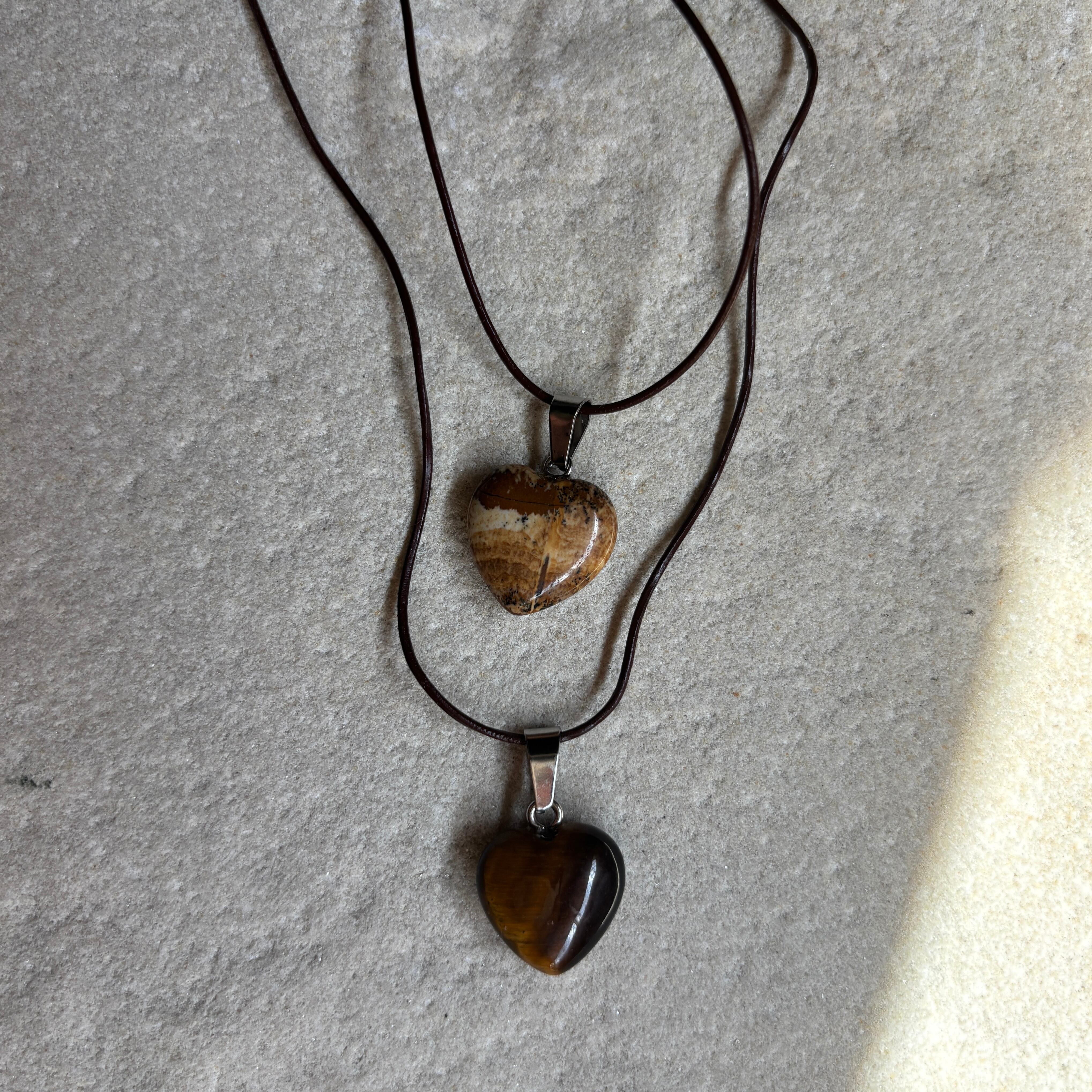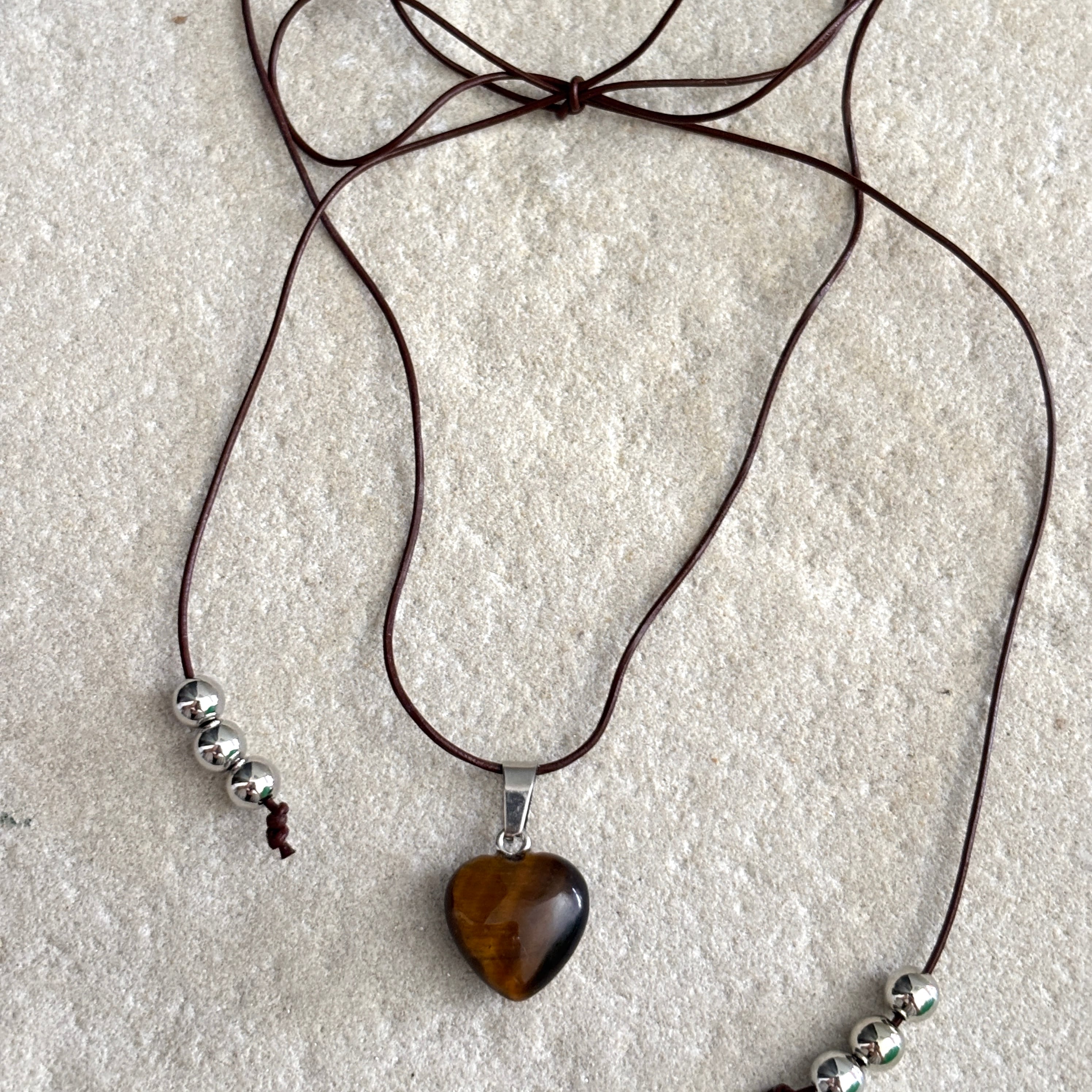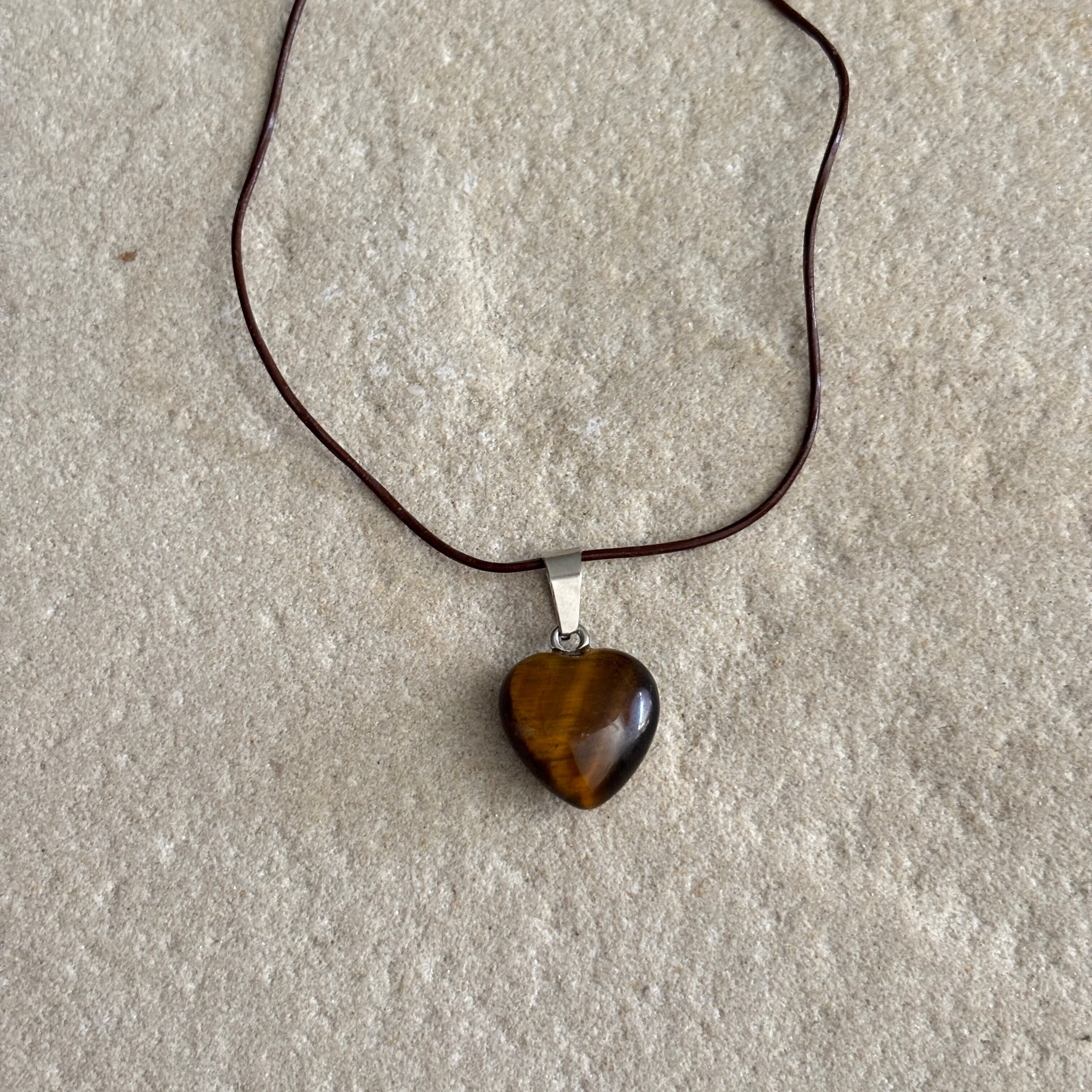 【unu】 stone brown ribbon choker -heart- (tiger eye)
