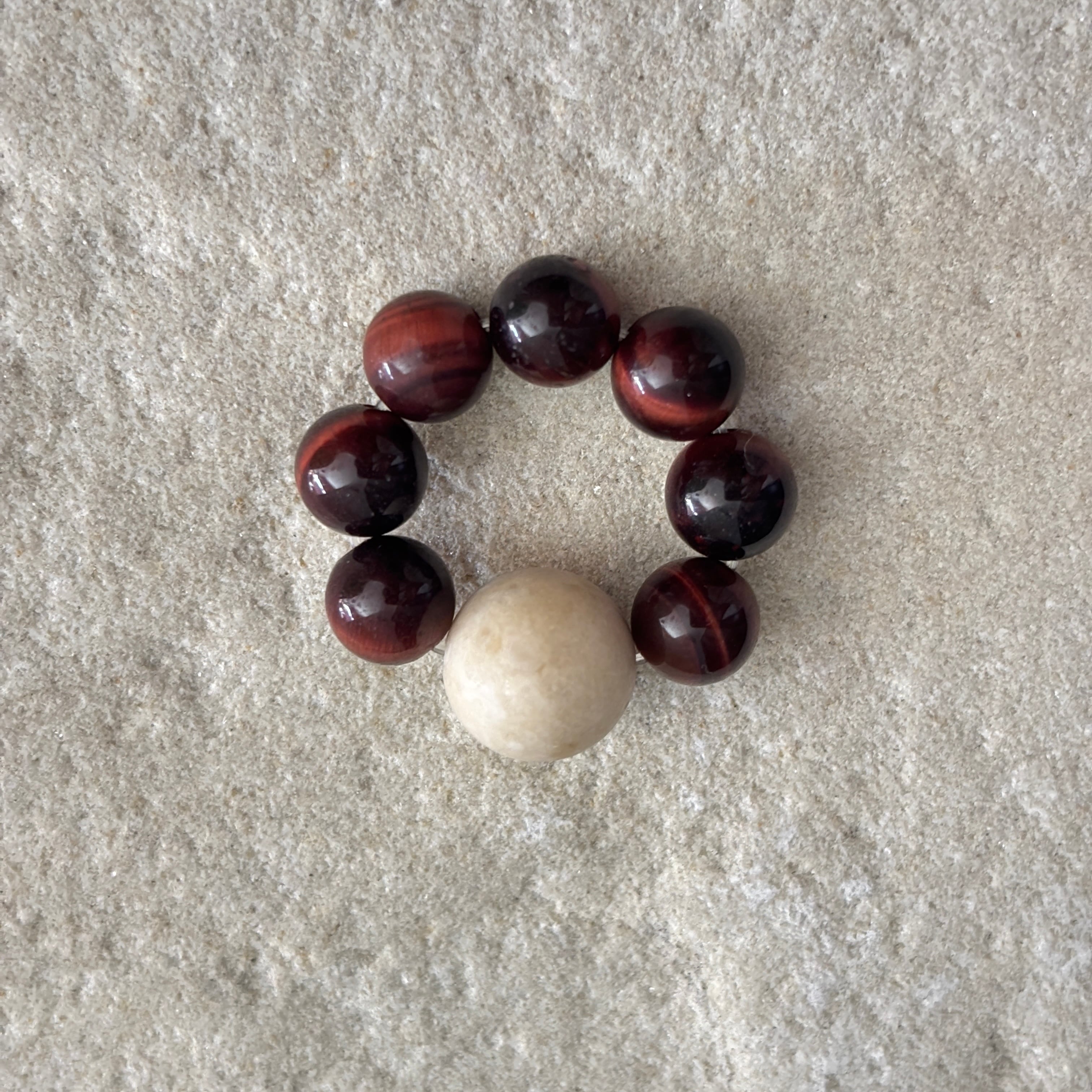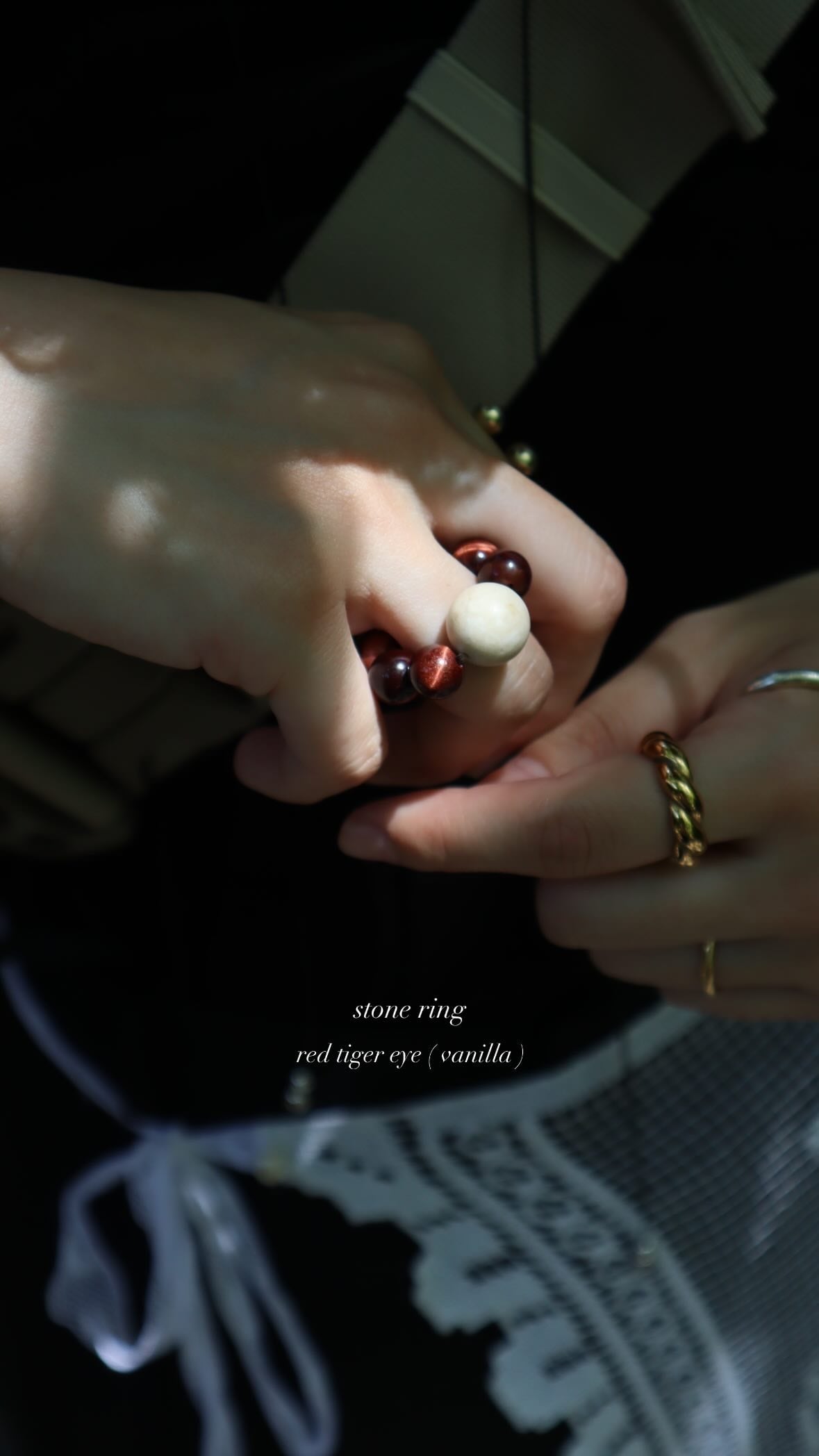 red tiger eye は光にかざすと、奥行きのある石の層が綺麗に見えます。少し赤みのあるブラウンカラーは秋冬の先取りとしても取り入れたいアイテムです。