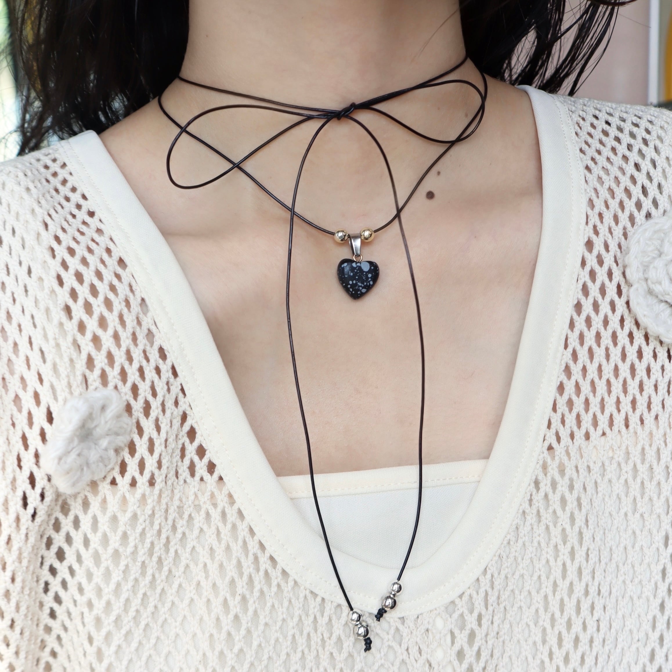material : 天然石、樹脂、レザー紐、丹銅