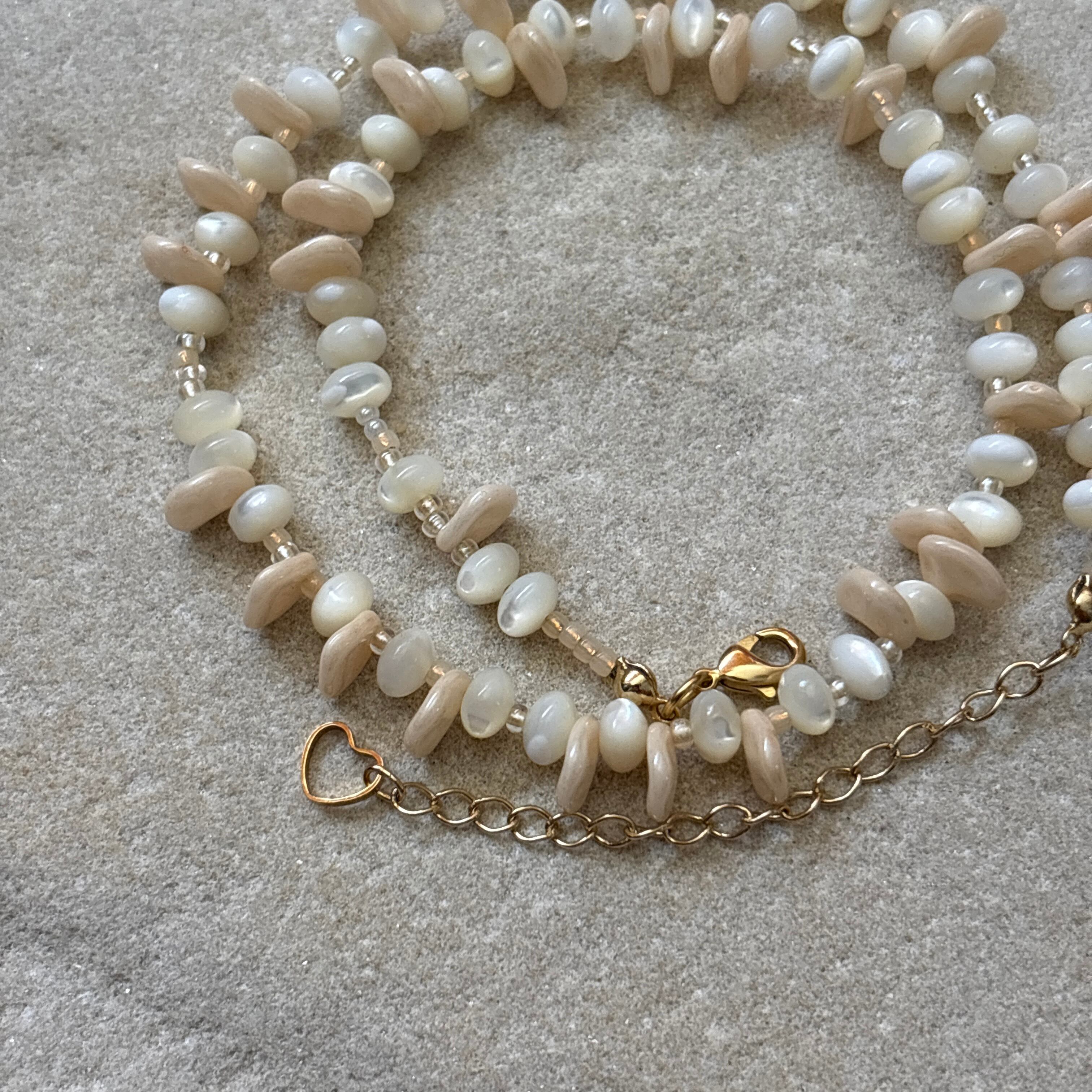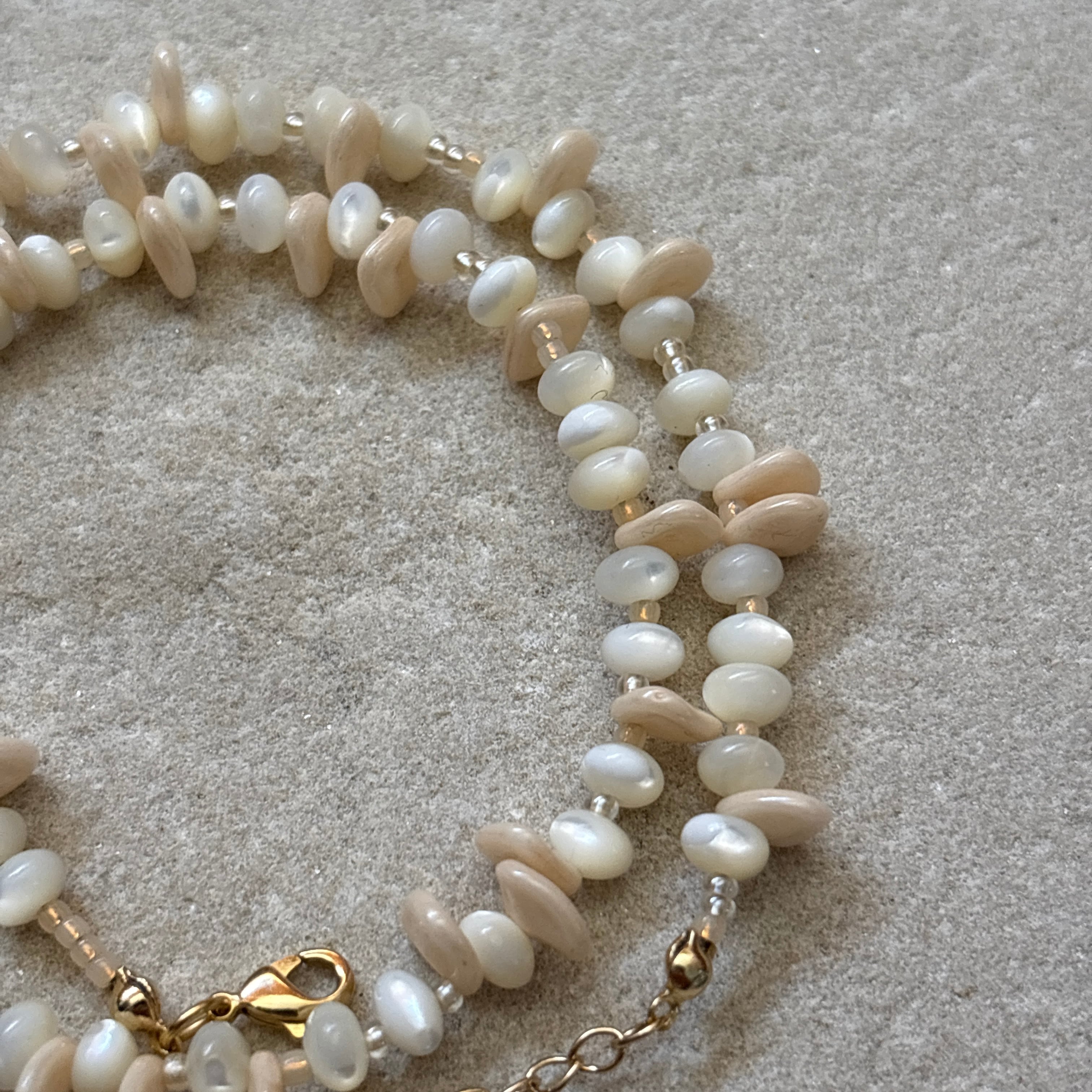 material : 珊瑚、チェコビーズ(ガラス)、ガラスメッキビーズ、樹脂、真鍮