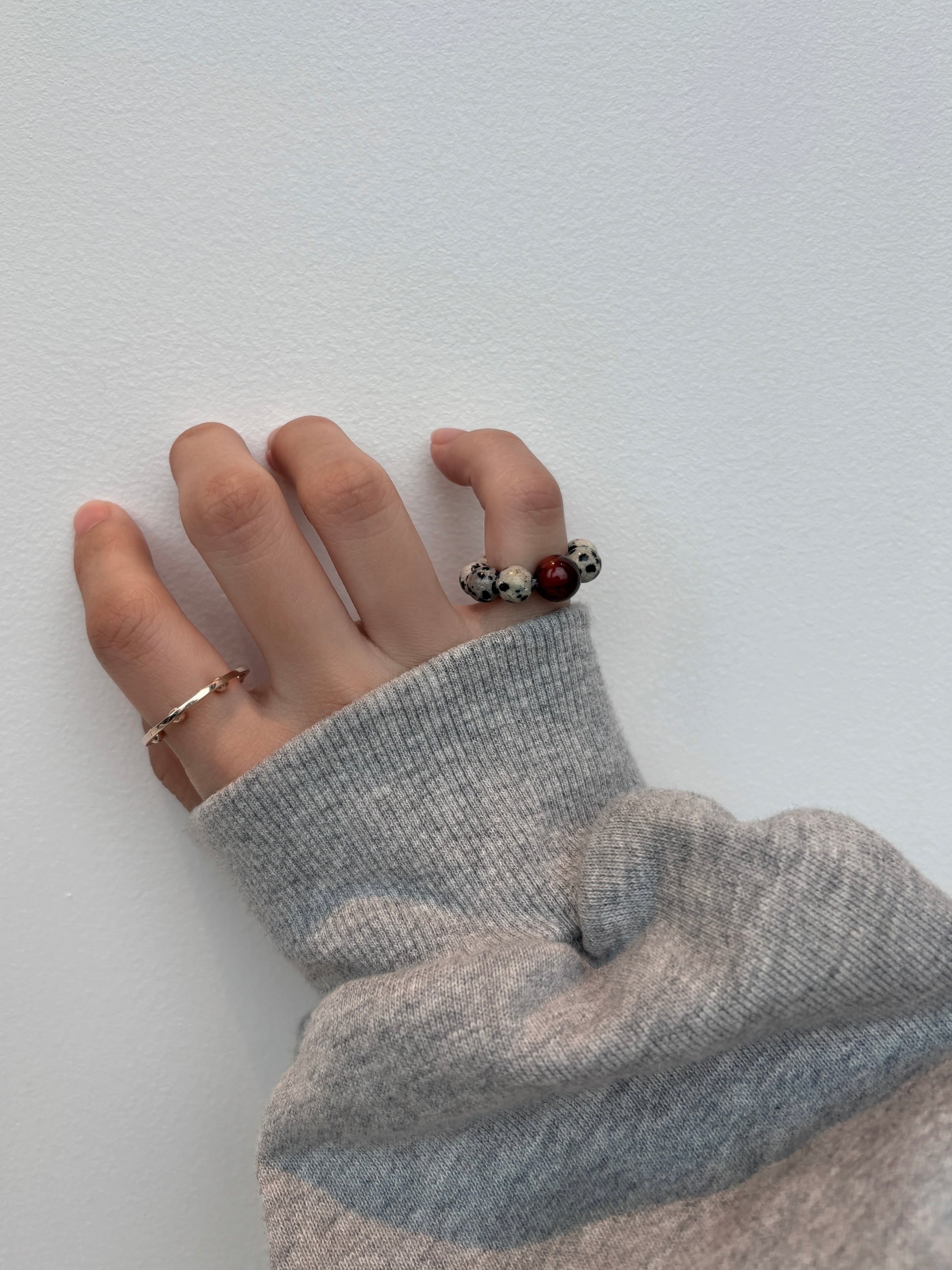 【unu】 mini stone ring (dalmatian jasper×tiger eye ) 3.5号〜9号