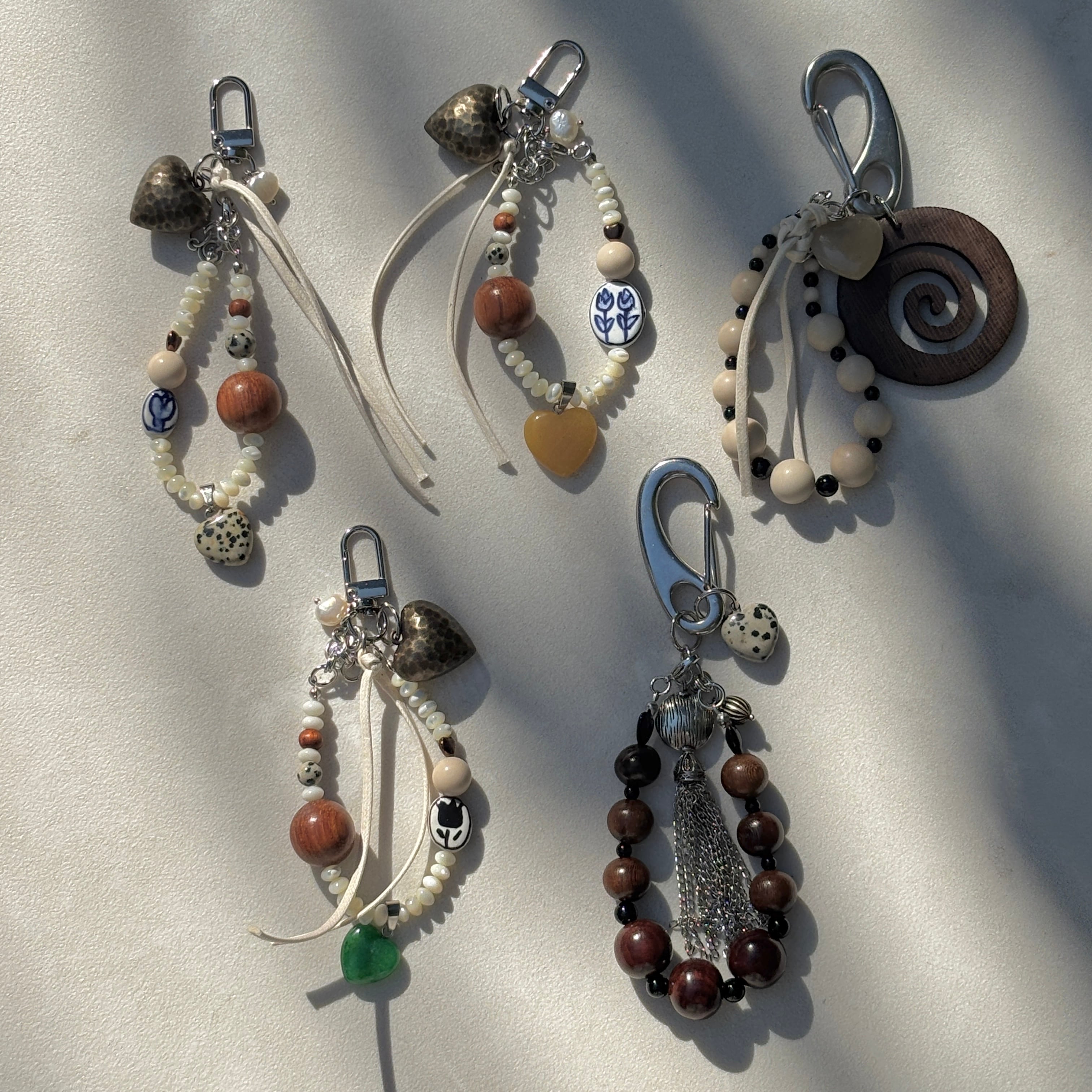 material : 天然石、ウッドパーツ、ガラスパール、樹脂、丹銅