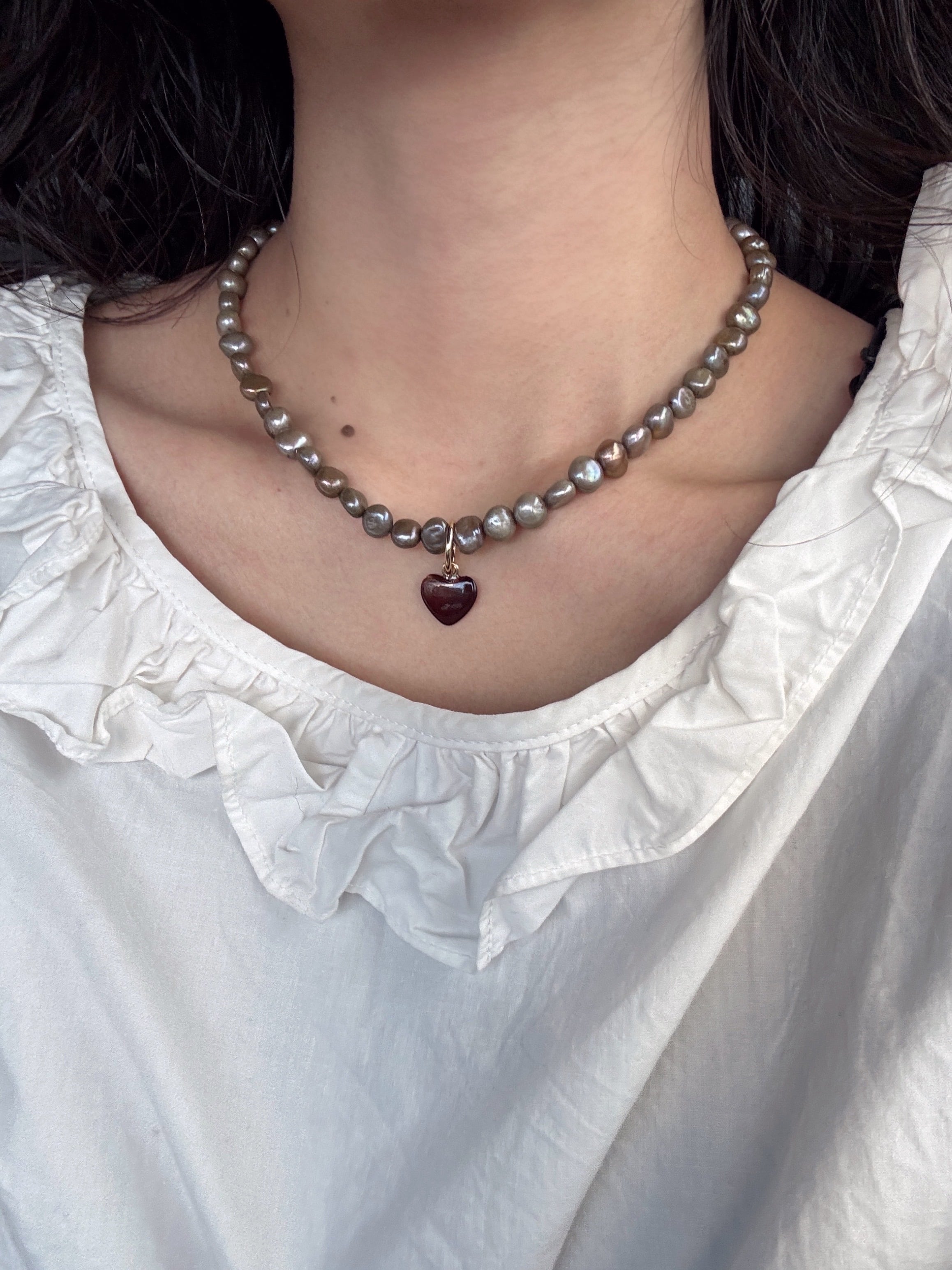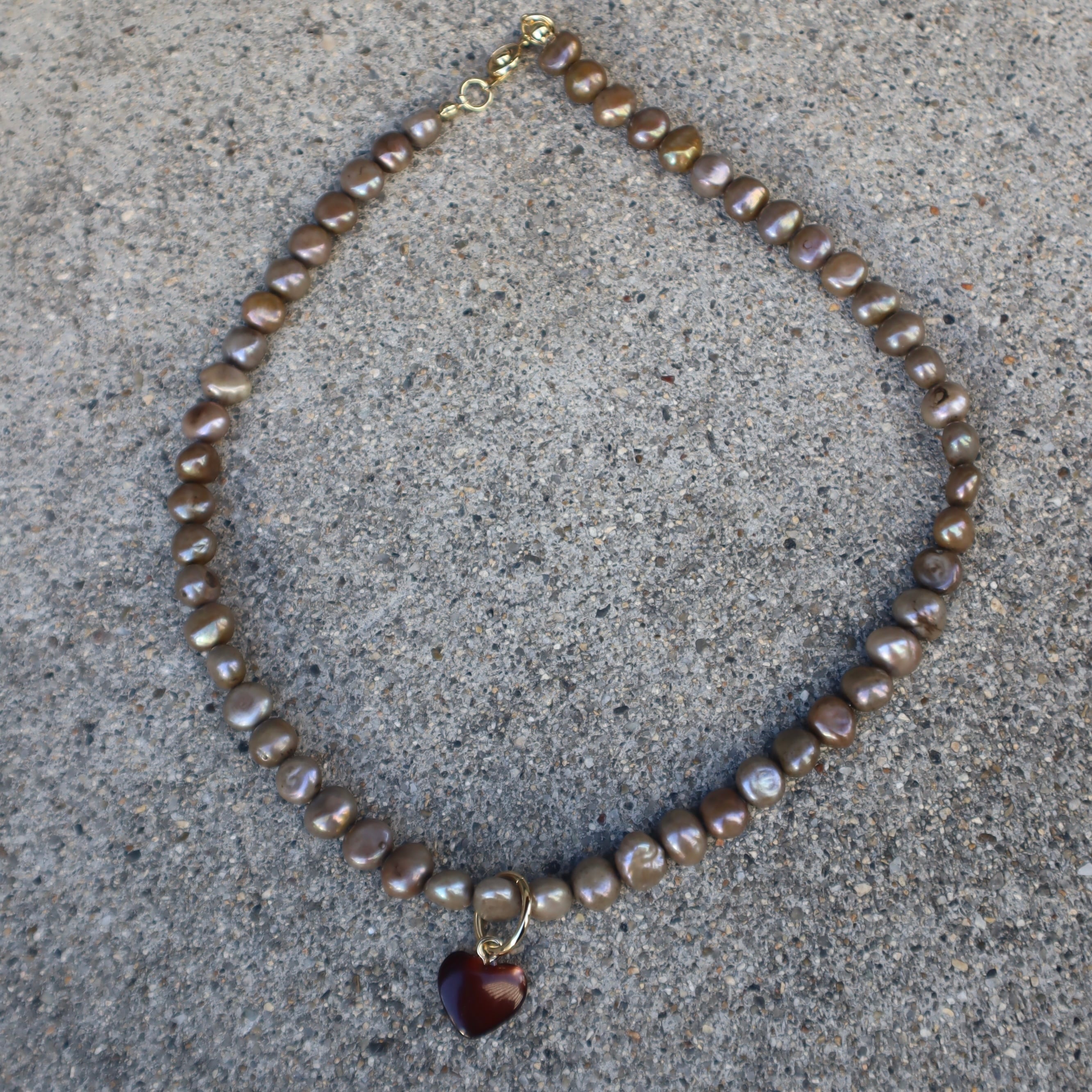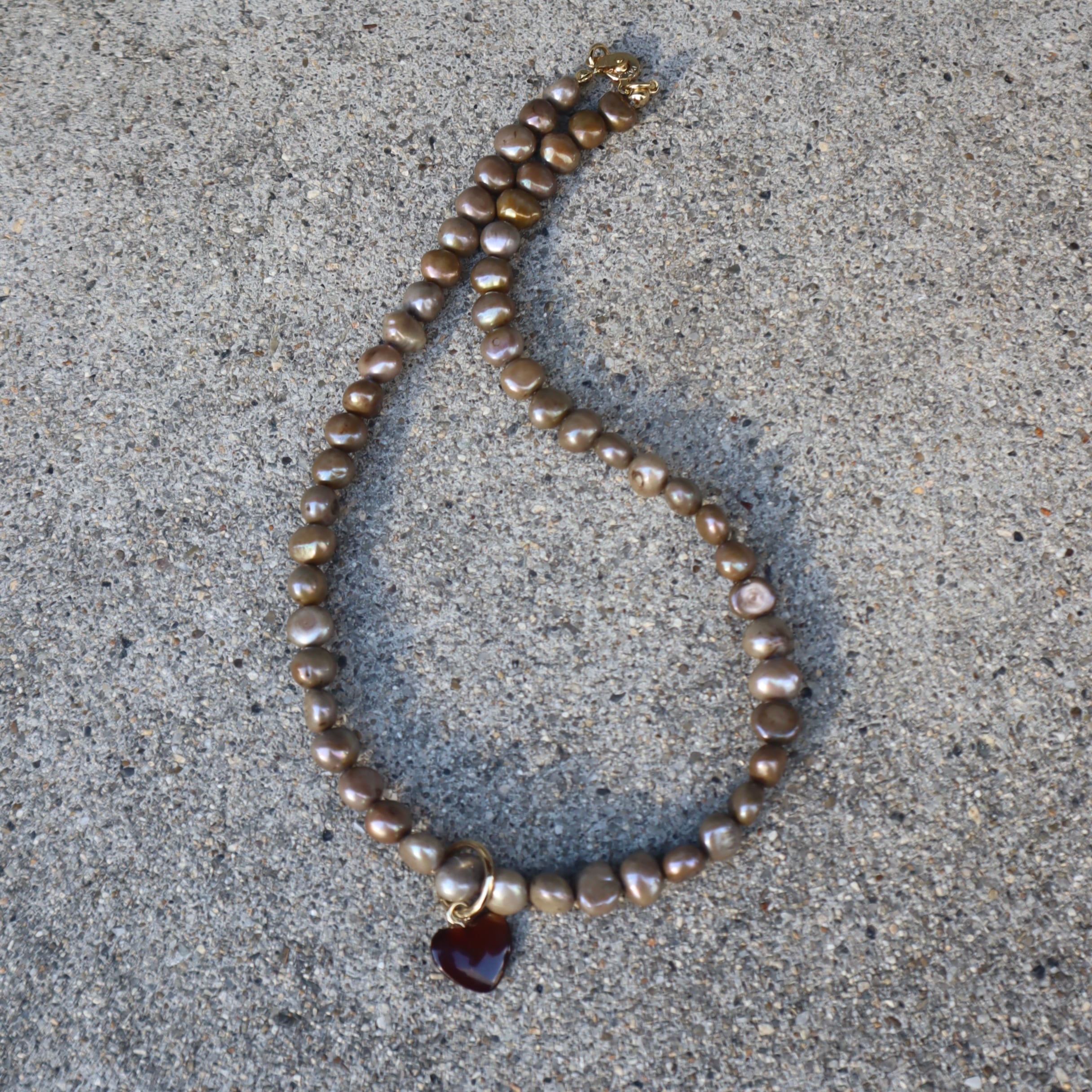 brown shell heart necklace (gray pearl)