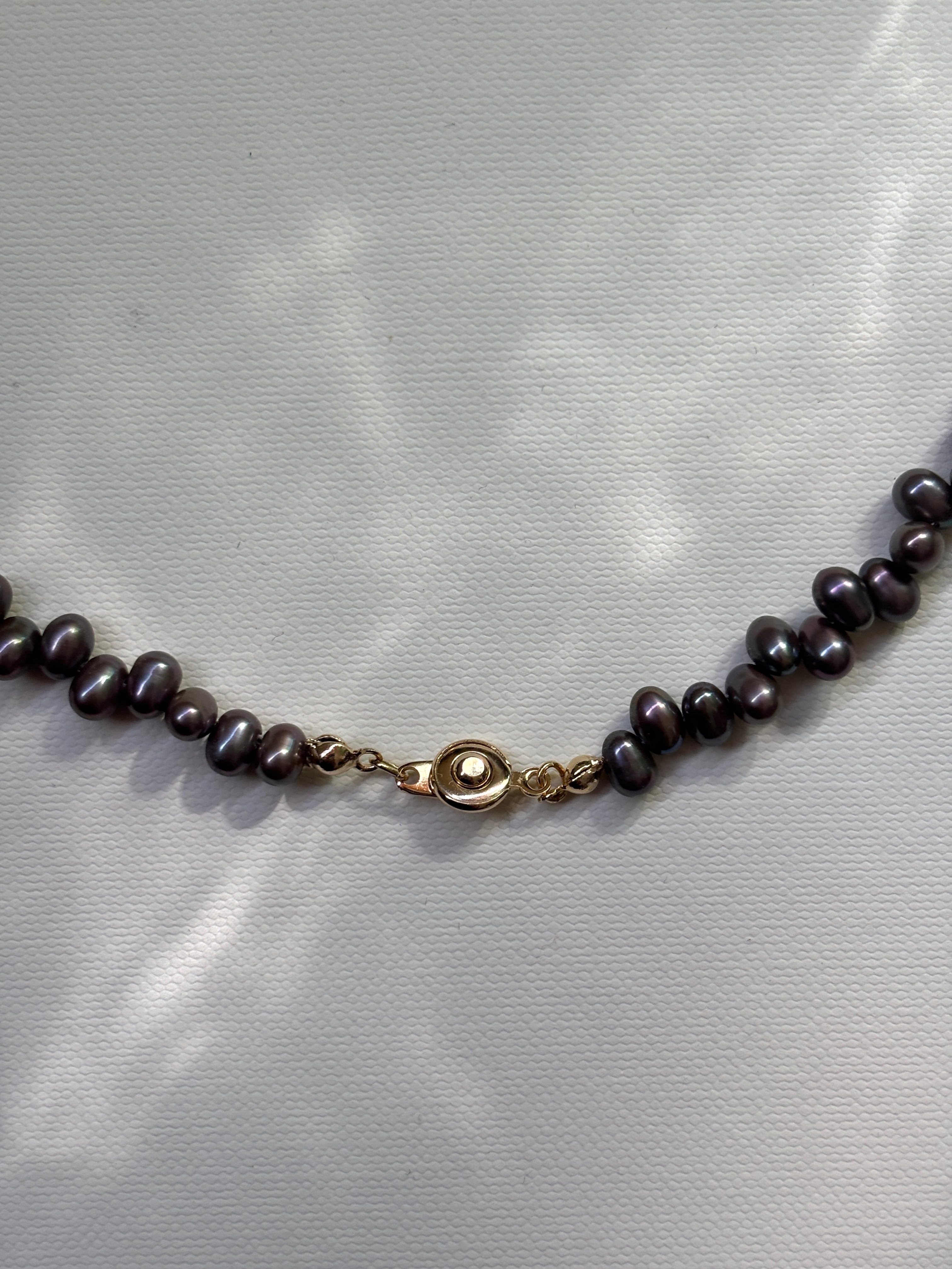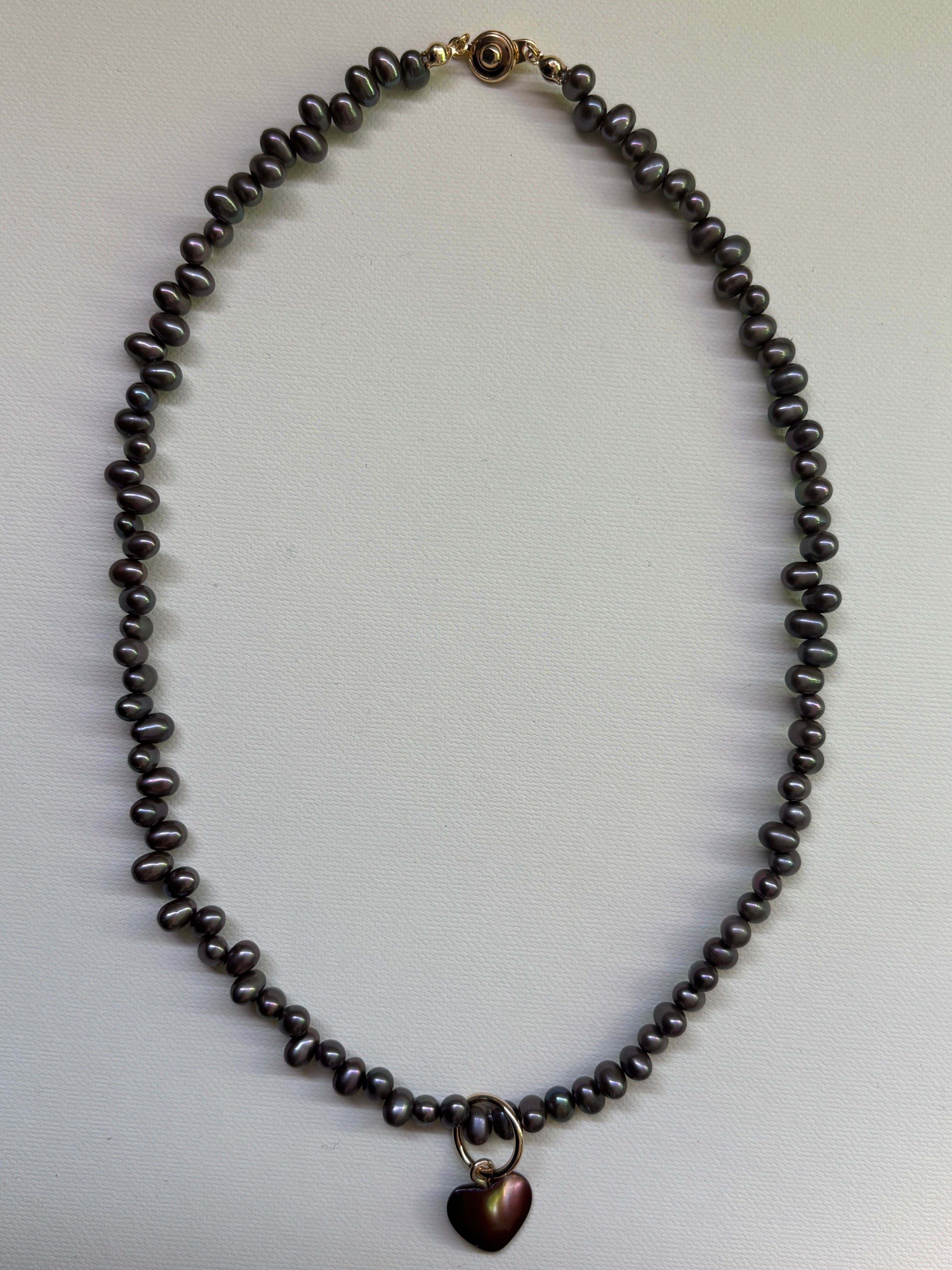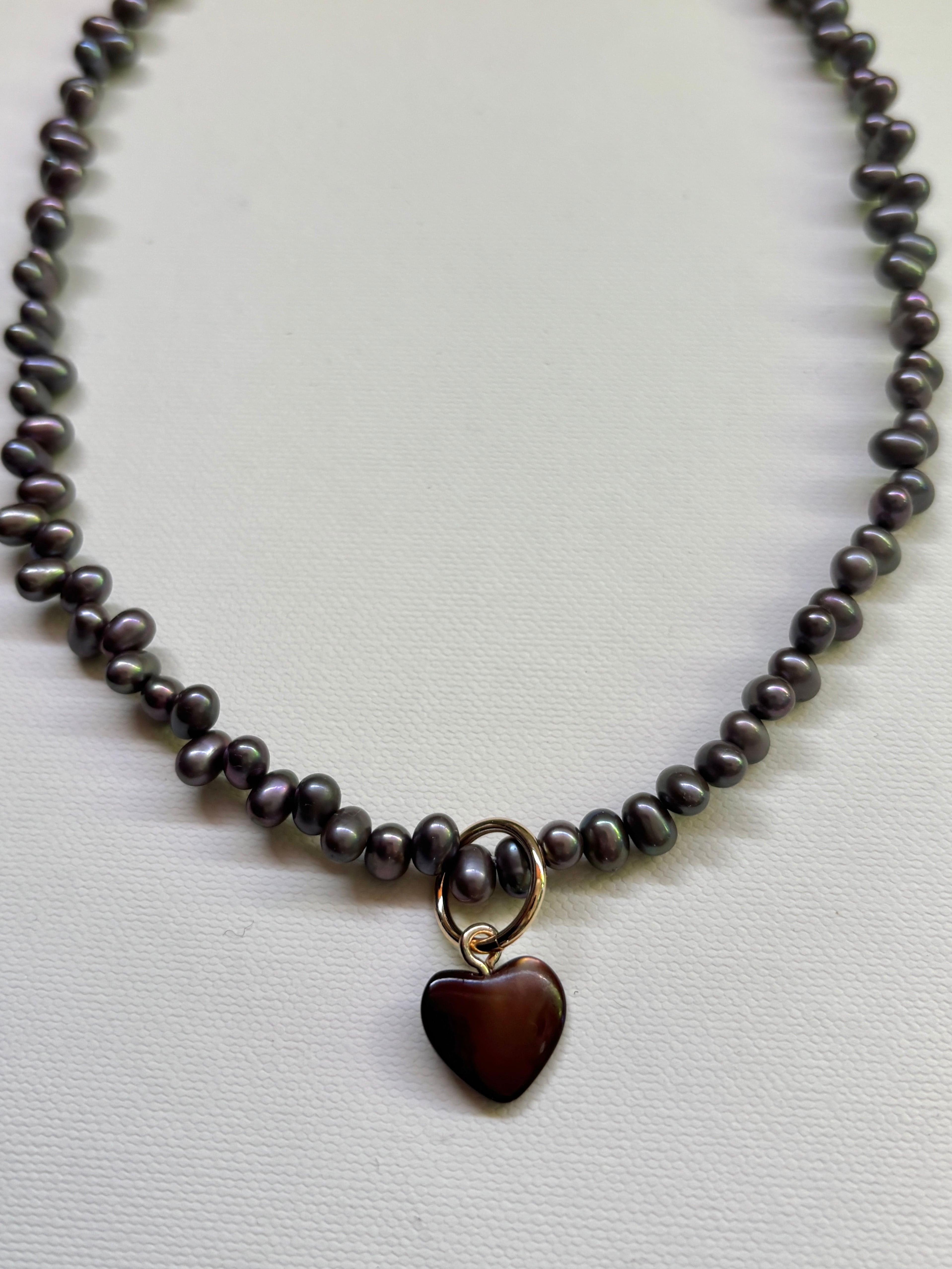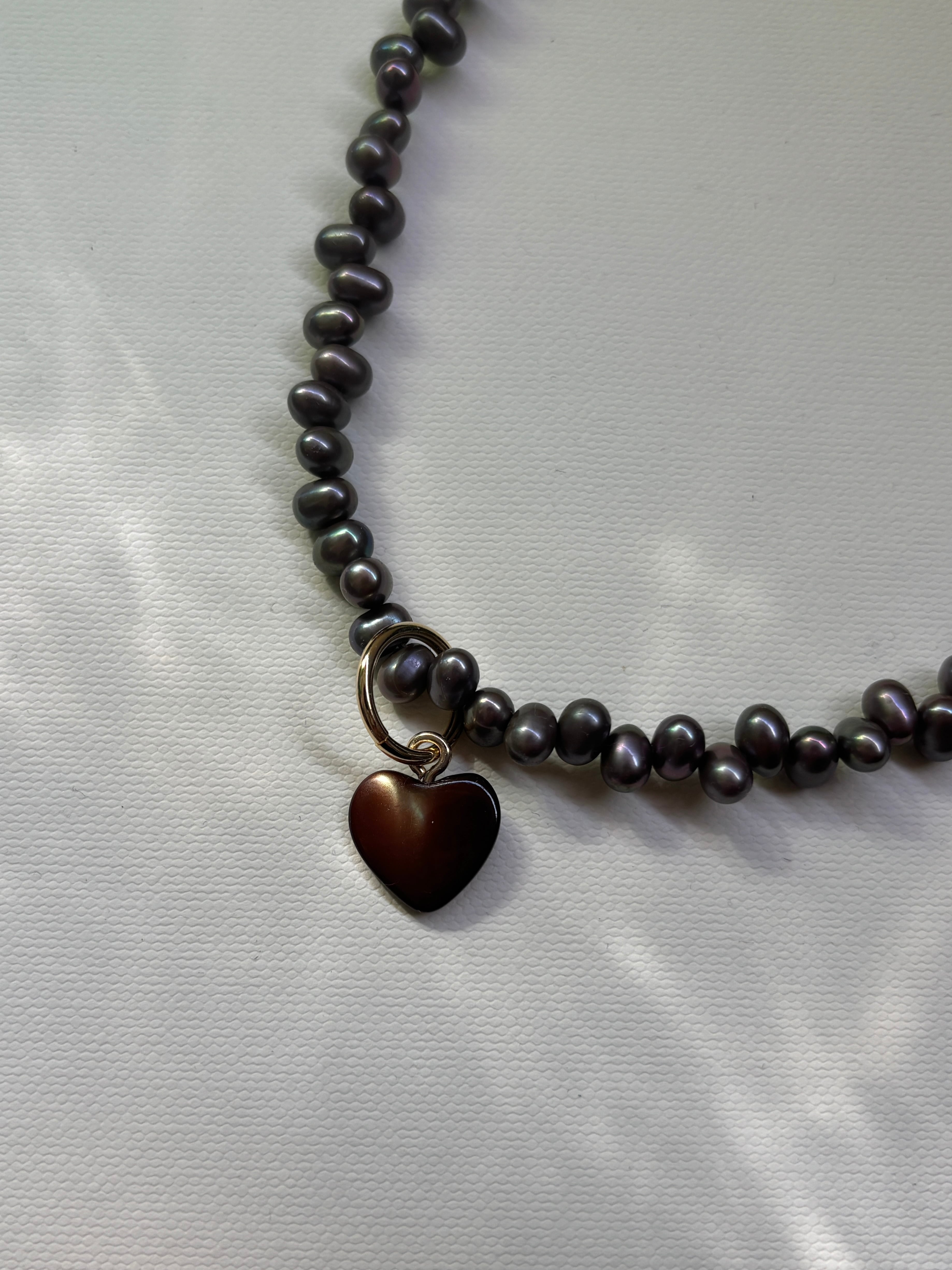 【unu】brown shell heart necklace (charcoal gray pearl)